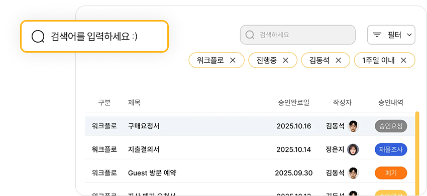 오프라인의 결재 프로세스를 완벽히 지원합니다.